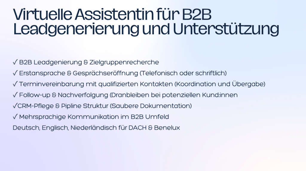 Nein – ich fokussiere mich auf Leadgenerierung, & Vorqualifizierung. Die eigentlichen Verkaufsgespräche führst du oder dein Vertriebsteam.